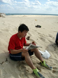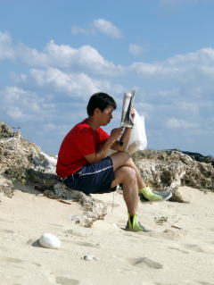 ![]() ![]() エージナ島で昼食をすませ、今度は糸満沖にある岡波島へ そこへはサポートスタッフのバシ&ナオも久々のツーリングで途中合流。 岡波島でもビーチコーミングを。 するとデカイ火薬を3本も。 それと何故か女性の下着が・・・ 若者向きからベージュのオバー向けまでたくさん。笑 |