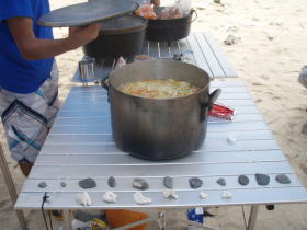 ![]() ![]() ![]() 2日目:まだ南風が強くしかも午前中は下げ潮・・・ と言う事は野崎あたりで潮目が出て漕ぎ出すには危ないので昼過ぎの潮泊まりまで各自自由行動。 昼食の前に新たなキャンプ地に漕ぎ出すか停滞か? 白石と黒石で投票をしました。 白石が多ければ昼食後出艇。 黒石が多ければ停滞キャンプ。 結果は停滞キャンプ。 |