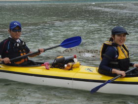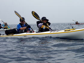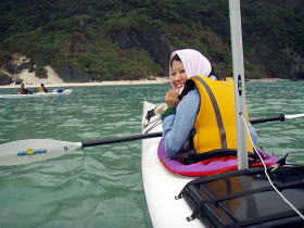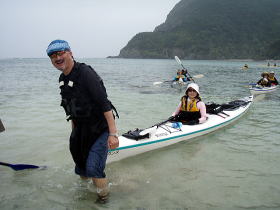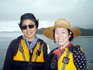 ![]() 桑原さんの奥さんです。 奥さんもバリバリカヤックが漕げます。 |
