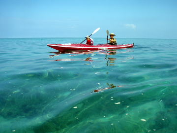 | 瀬長島から岡波島まで行ったのですが「行きは追い風」と言う事は帰りは向かい風 。 急げ〜漕げ〜飛行機まにあわないぞ〜! 離陸2時間前に瀬長島到着、片付けしシャワーはいってちゃ〜んと間にあいましたよ。 |