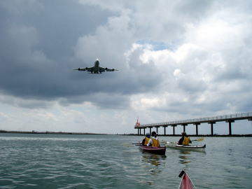 ![]() ![]() 瀬長島スターとちょうど空港誘導等の真下で自衛隊の戦闘機が着陸 |