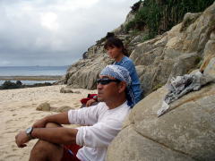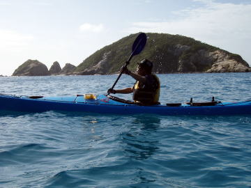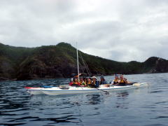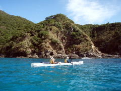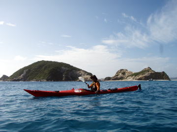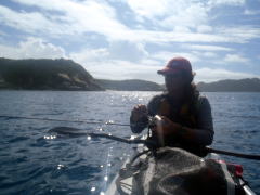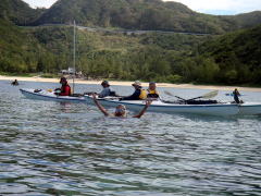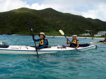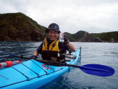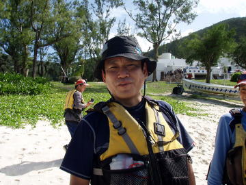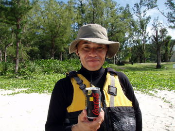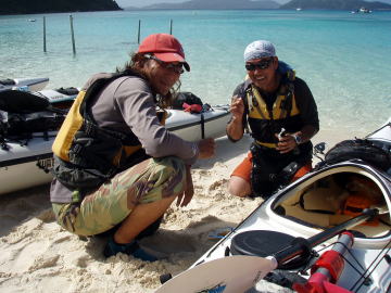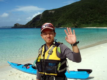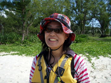 せっかく沖縄まで来たのだからシーカヤックを思う存分漕ぎたいと言うことで2日連続のdayツアー参加です。 出張中ということもありHPやブログへの顔がわかるのはマズイ!と言う中○さん。 まぁこのぐらい隠れていれば大丈夫かな? |