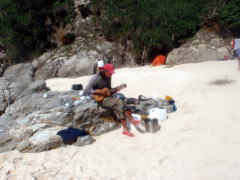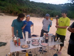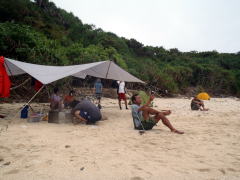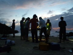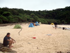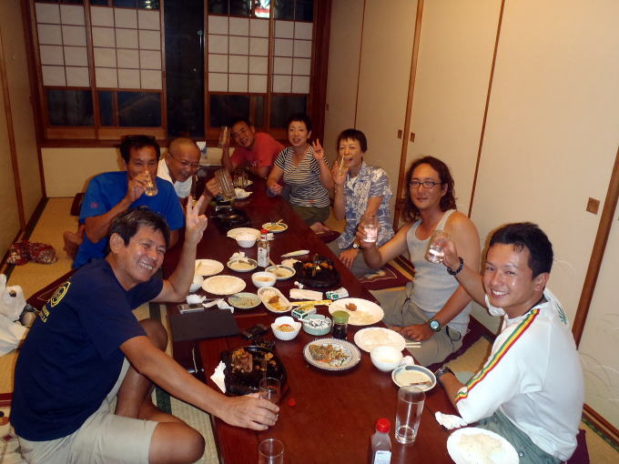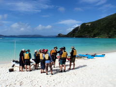 今回のツアーは愛知県にあるレインボーとのコラボツアーでレインボーから中谷さん、さえみちゃん、増谷さんとスタッフ3名、 和歌山県の野遊び屋から曲里さんがスタッフで参加、 ゲスト8名スタッフ5名で渡嘉敷島のクンシ浜で停滞キャンプをして 釣りをしたり、シュノーケリングをしたり、浜辺でずーっとビールを飲んでたり、読書をしたり、焚火をしたり、 無くなったビールをカヤックで買い出しをしたりと 参加者それれぞれが思い思い好きな事ができ、改めて停滞キャンプの良さがわかるツアーでした。 |