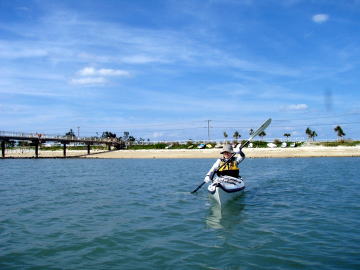 | 2日目:南城市知念志喜屋から風に乗りながら新原ビーチ経由、読谷山岬を通過、 八重瀬町と南城市との境にある雄樋川をさかのぼり沖縄ワールド近くまで漕いで行きました。 その間、橋を4つも通過。 この日は東の風がかなり強くシーカヤック漕ぐにはこのぐらいが限界かな? |
