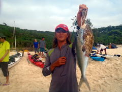![]() ![]() ![]() 釣果:岸からルアーフィシングでナガジューミーバイをGETした増谷さん。 カヤックフィシングでオーマチにイシミーバイをGET |