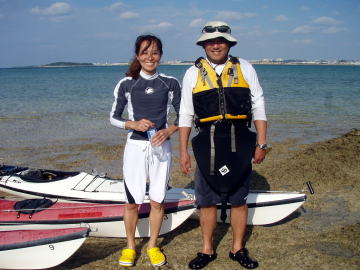 ![]() 左:今年からカヤックをはじめたそうでこれまでのパドリング歴4回。 右:パドリング歴10数年、インストラクターレベルの技量あり。 |