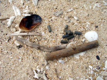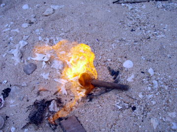 ![]() ![]() 左:すごい火力で燃え尽きてしまった。 右:島の裏にはまだこのような爆弾が・・・ 歴史を感じる岡波島です。 |