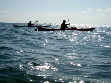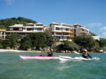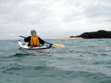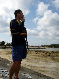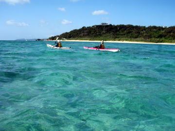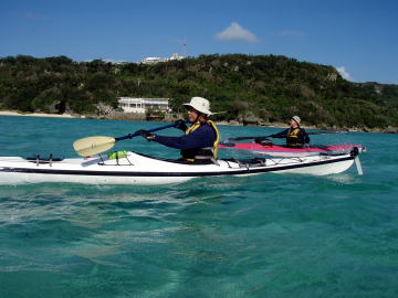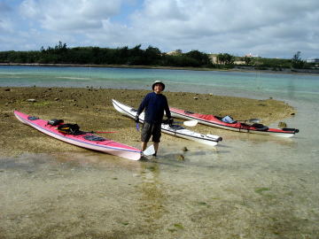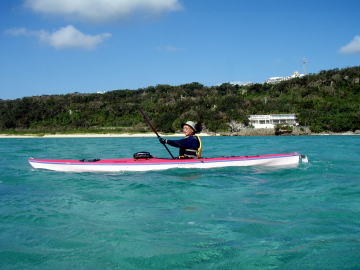 | 今回は漕店リピーターの大御所お二人が参加。 予定では1月28日・29日・30日と3日間連続での日帰りツアーの依頼の予定でしたが、 どうも天気が不安定で漕げそうなのは3日間のうち初日目だけのツアーになりました。 北西の風、沖合は波の高さ2,5m〜3m 沖縄本島南部はちょうど島影で北風を遮ってくれる。 冬型の天候でも漕げるコースを選び志喜屋をスタートして奥武島の往復12q漕ぎました。 かなり漕ぎ足りないが目標は天ぷら&ビール それでも少しは漕げたので良いかな? |