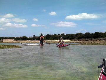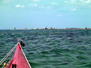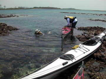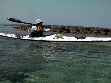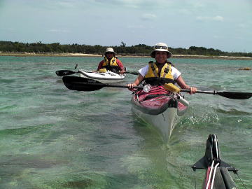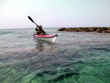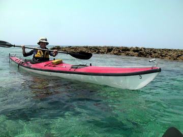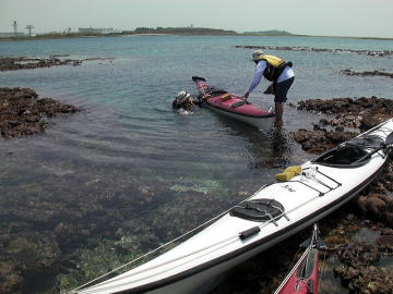 春の大潮でしかもマイナス潮位、 と言う事は潮の流れも速いく遠くの島に漕いで行くにはリスクが高すぎる。 しかしマイナス潮位の時は普段現れない幻のリーフが干上がる時で こんな時はカヤックで幻のリーフに漕いで行き上陸 リーフトレイルし珊瑚を観察し時々見え隠れしているサザエや貝拾いが面白い。 それを2日間催行したツアーが4月7日8日です。 |