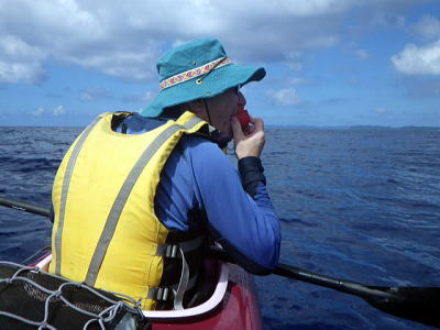 ![]() ![]() トマトを海水付けてこれが美味い両者地元カヤッカーの安○さん:左 右:望○さん |