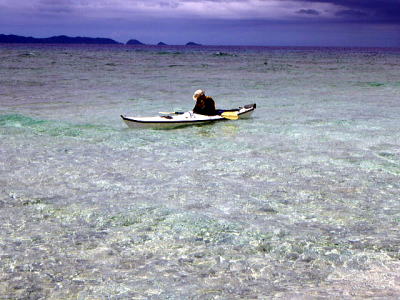 9月7日(金)瀬長島よりルカン礁 往復(27q) あ〜〜〜今日は頭が重たい! 前日飲みすぎた〜 僕もそうだが今日の参加者の金○さんも言う。 予定では前日の参加者達とカヤック&シュノーケリングの予定でしたが「飲みすぎた〜参加できません」と・・・。 金○さんは何処までも漕げるような今が脂ののったカヤッカー。 ちょうど良い機会だ、金○さんはルカン礁はまだ行ったことが無いので 「そこまで漕いでアルコールを退き切りましょう。」 しかし頭は重たい ・・・ |