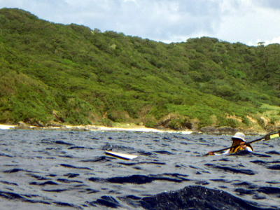 ![]() ![]() 漕ぎ出して3時間30分 前島南側 凪とは言え多少は波がありました。 |