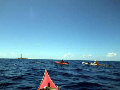![]() ![]() 左:水平線右端の白い点、あれがルカン礁です。 右:ただただひたすら漕ぐ、1時間50分ノンストップしたらこのような感じで見れます。 |