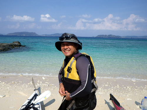 ![]() 今回はロングツーリングじゃないんですがたまにはゆっくりと慶良間のパドリングを楽しみに来てくれた奥○さん |