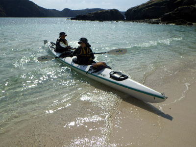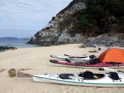 ![]() ![]() 今日もビールに氷と水を補給して再出発。 カヤックを漕ぐよりこの荷運び作業だけが辛い、でもこれもシーカヤックならではの味わいである。 北に向かうほど波風は厳しく本日のキャンプ地はヒヤルガ浜(別名つがい浜)でキャンプ。 |