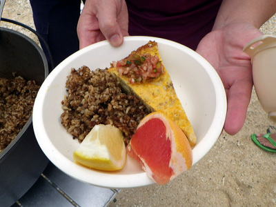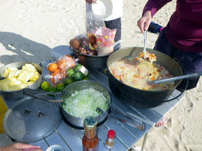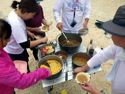 ![]() ![]() 朝飯(タコスのごはん炒めにタコスの玉子とじ) 食べ終えたら渡嘉敷まで向かい風の中で海峡横断です。 しっかり食べてね〜 |