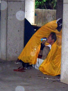 ![]() ![]() 昼寝の為にテント内に入ったヨウちゃん、時折顔を出しては大好きなビールを幸せそうな顔をして飲む。 |