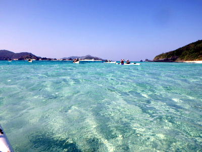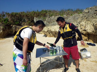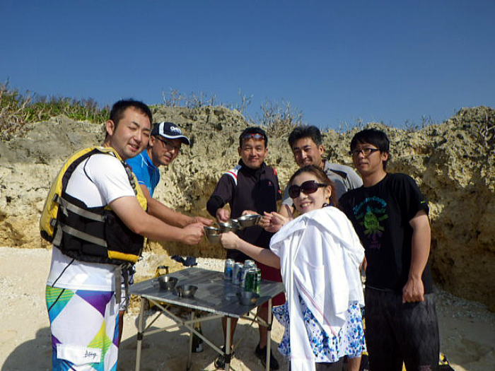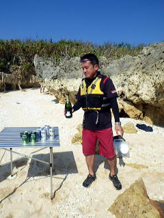 | 11月7日 本日はリピーターで関東中心の油売り業界の若い社長達の岡波島へ行く日帰りツアー あれ〜当初の予約人数より減ってますが急遽女性も一人参加になった。 どうやら沖縄に来るたびに行く松山のキャバクラの女の子を日昼まで同伴したらしい。 まあそれは置いといて岡波島でのんびりしてきましょう。 |