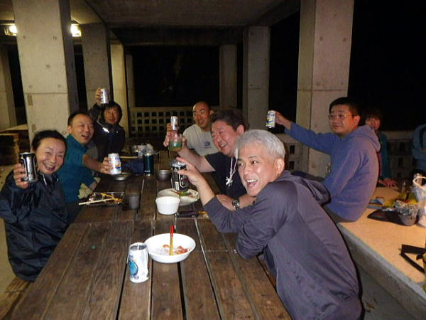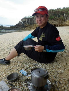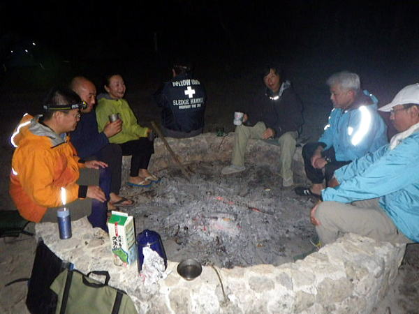 ![]() 熾火を囲んで泡盛で乾杯! ZENメンバー、自分たちで購入分を飲みほし リピーターグループの泡盛に手を付け「これ〜ちょっとまずいんじゃない」 そこで名言が「泡盛に国境は無い!」 「皆で飲んだら楽しいさ〜」・・・。 凄い名言です。どこか酒造メーカーがキャッチコピーで使わないかな〜? |