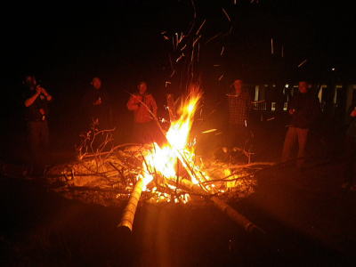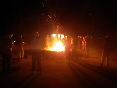 | 施設なんでファイヤーサイトもある。 せっかくなので大きめのキャンプファイヤー。 |
