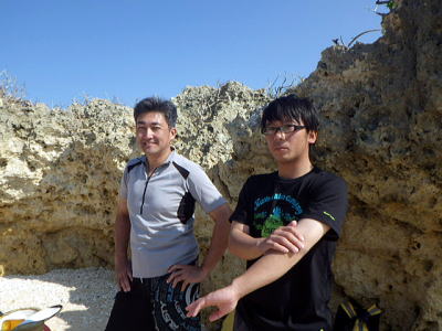 | 本来なら日帰りツアー&講習希望でしたが 空は良さそうに見えますが、あいにく天候は下り坂。 天気予報もあたり、雨が降ってきました。 そこで半日ツアーに変更。 昨年までは沖縄在住の石田さん |