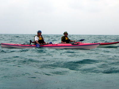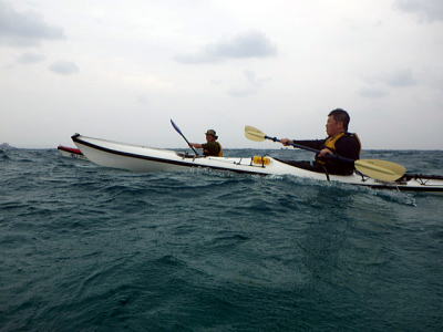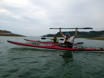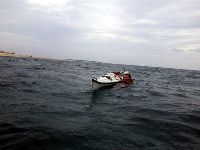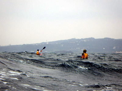 ![]() ![]() 行きよりも帰りは追い風追い波キツイ! 右:「肩の力抜いて〜」かなり緊張してます。 |