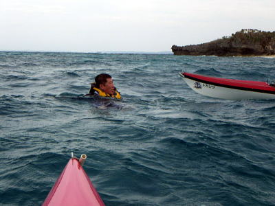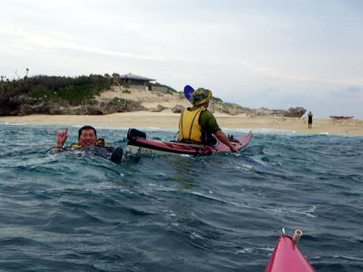 ![]() ![]() 遅れていた○吉さんがコマカ島手前で沈!笑 左:コマカ島に上陸している二人見えますか? 僕が抱え込みレスキューをしようと思ったのですが再乗艇には自身がないようで 島が近いんで泳いで行く事に・・・ ○田さんも笑いのネタが欲しくて来てくれました。 |