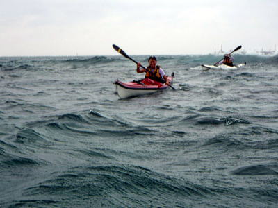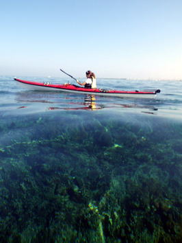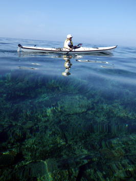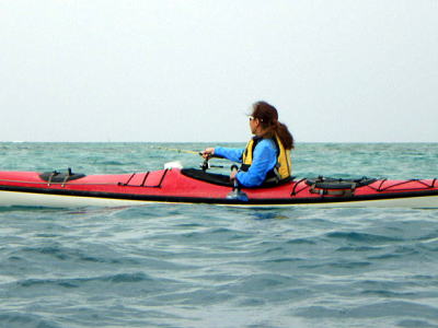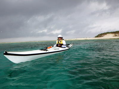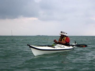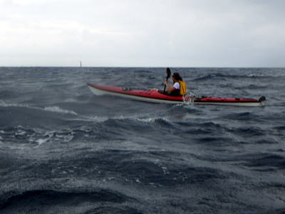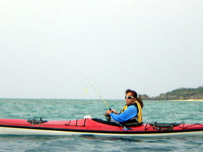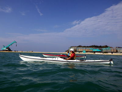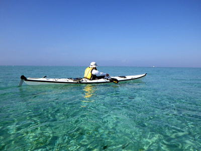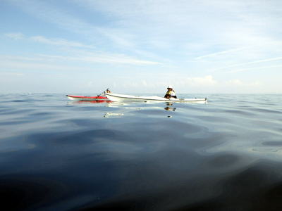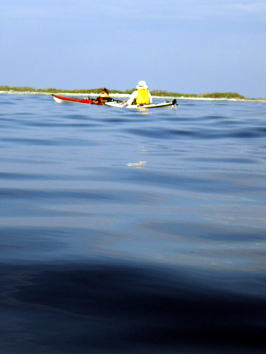 ![]() ![]() 沖合を漕いでも風もなくベタ凪・・・この時だけは! |