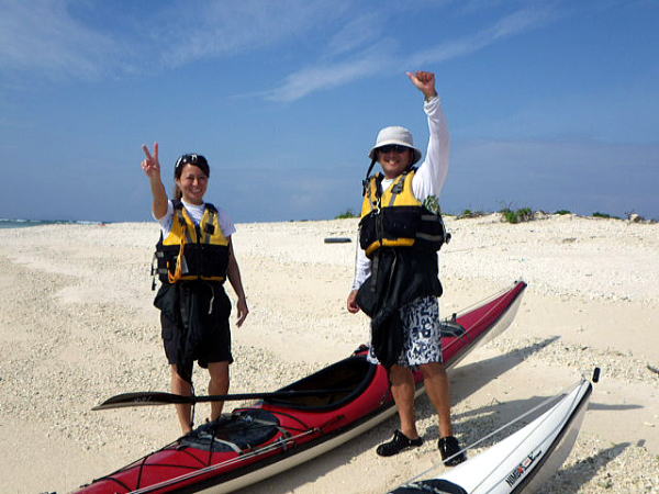 | なんと2月で夏日です。 凄い!気温25,2℃ 2013年初ツアーです。 (1月のツアーは全て悪天候の為中止でした。) 本日のゲストは年末ツアー予約を入れてくれましたがその際も悪天候でツアーが中止になり リベンジを兼ねて来店してくれました。 2月2日天気が良いので漕げるときこれまで行った事が無い所まで遠くに漕ぎましょう。 と言う事で瀬長島からチービシまで漕いじゃいました。 ってなわけで写真見てください。 (鯨も見ましたが別けあって写真撮れませんでした) |
