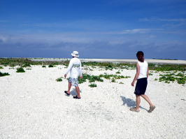 ![]() ![]() ![]() 上陸の乾杯、昼食を終えて島半分をトレッキング。 |