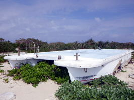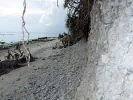 ![]() ![]() ![]() 左:上陸の際に見えたサメ! 中:台風で打ち上げられたのだろうかブセナマリンクラブのフロート。 下:昨年の度重なる台風で島の半分が削られた爪痕。 |