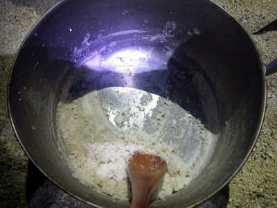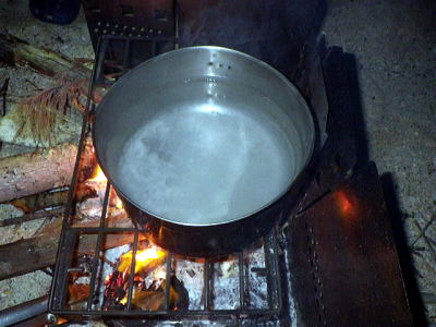 ![]() ![]() 右ブレードだけのパドルを笑っていたら、僕は調理用の塩を忘れていました。 海水に薪はいっぱいあるので、なければ作れば良いさ~。 早速、鍋に海水を入れてじっくり煮詰めて約1時間。 4ℓの海水がお茶碗一杯分の天然塩へ。 なんだかんだ、塩づくりをしている間に久々にタマン釣りの仕掛けをやっていると、狙い通りGET! |