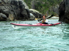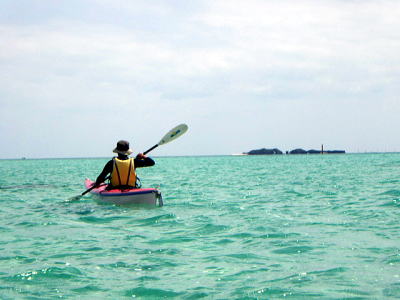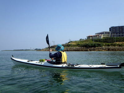 | 4月22日瀬長島~岡波島 数日前に問い合わせがあって当初のツアーは悪天候で中止。 よく話を聞いてみると那覇在住で これまで何度かシットオンカヤックは漕いだ事がある河○さん。 良い日を選んで本格的なシーカヤックを漕ぎにくてました。 |