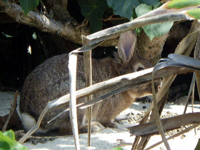 ![]() ![]() 左:コマカ島に上陸「あれ~無人島のはずなんだが後ろに男の人が・・・」 右:コマカ島は野兎が繁殖 |