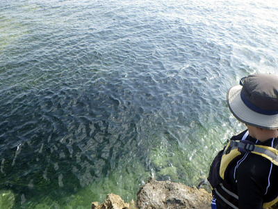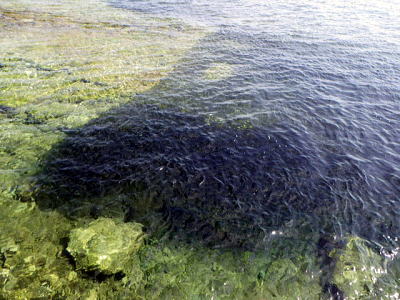 ![]() ![]() 黒ずんで見えるのは全て鰯。 その量、面積だとだいたいテニスコート1面分 「投網があったらな~」と思うのは僕だけか? |