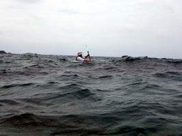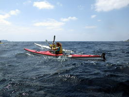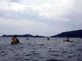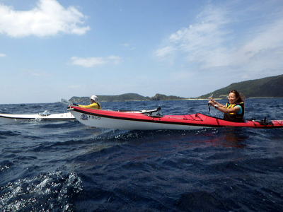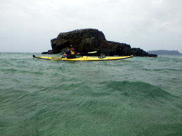 | 「シットオンカヤックとは別物ですね」と上手い具合にバランスを取りながら岡波島までの往復8㎞を漕ぎました。 また天気の良い日にお越しください。 お待ちしております。 |