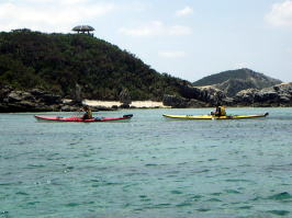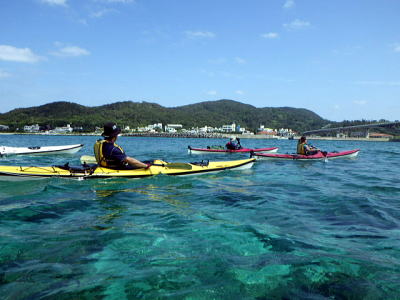 | 4月8日(月)志喜屋海浜公園から久高島往復(16㎞) 最近は月に1・2度は久高島行ってますが 着ているものが違うから知っているのかシーカヤッカーと分かっているようです。 「ほんとに漕いで来たの?」 「はい、片道8㎞を1時間20分で」・・・ 「早いね~、昔のポンポン船とそんなにスピード変わらないね~」と島のオジー達は言う。 少しずつではあるが沖縄県内どの島でもカヤックの認識を知ってもらって嬉しいさ~。 |