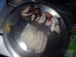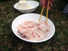 | 食べきれないぐらいのタマンの刺身にJAスパーで買った島豆腐などで昼食。 あっという間の2泊3日、やっぱり慶良間のシーカヤックの旅は3泊4日がゆっくり楽しめそうです。 また来月お待ちしております。 |