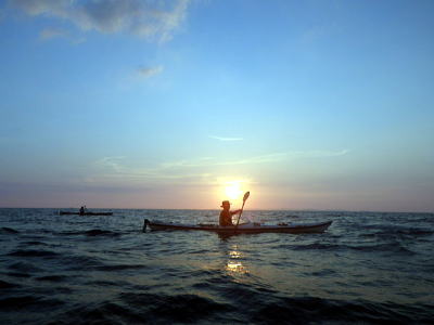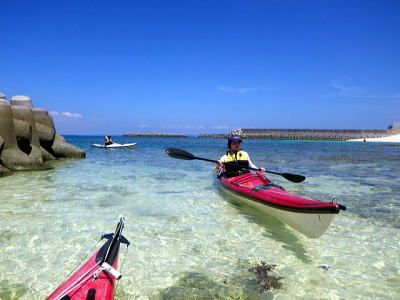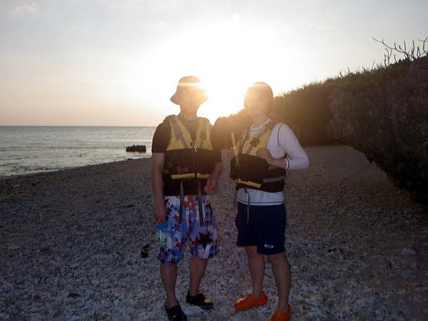 | 9月7日 久高島ツーリング 前日に続き西○ご夫妻。 今回は2泊3日カヤック三昧で初日目にカヤックを漕いで夕焼けを見に行き で2日目は久高島までの往復を漕ぎ3日目は関西へ帰ると言う計画です。 かなり強行な旅ではあるりますが天候にも恵まれ全て計画通りのパドリングガできました。 |