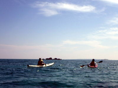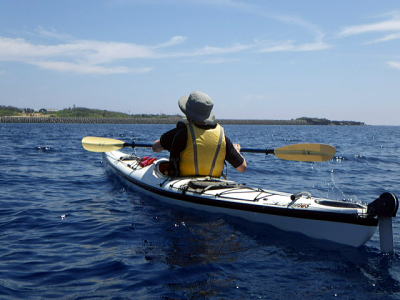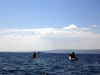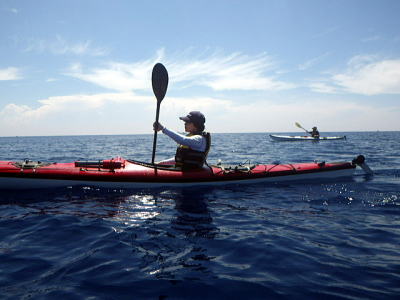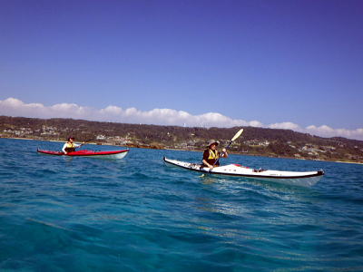 ![]() ![]() 風もおだやかベタ凪なんで注意する事は漁船やプレージャーボートとの接近だけ、 帰路は前方のコマカ島と山の稜線沿いの風力発電の間ぐらいを目指してそれぞれ自由に漕いでもらったのですが、 「夫婦喧嘩でもしたのかな?」笑 二人とも全然違う方向に漕いでゆく? |