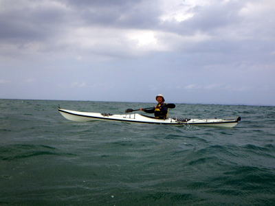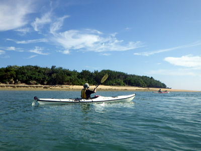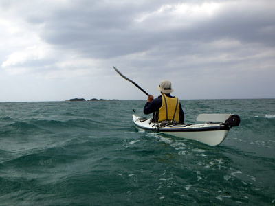 | 9月27日 岡波島ツーリング 数日前は熊本にいたらしい、日本全国長期出張中で 「年数回だけシーカヤックを漕ぐんで素人なんです」と言う堀○さん でも毎週リバーカヤックを漕いでいるので漕ぎの技術は上級者でした。 |