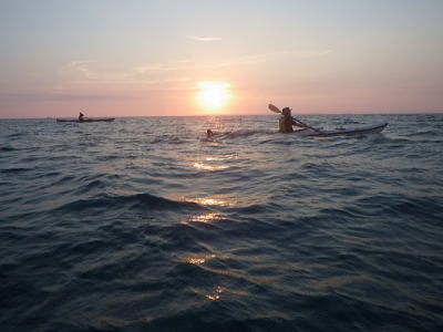 9月6日夕焼けを見に行こう。 久しぶりに関西からから来てくれました西○ご夫妻。 天候も良いし今日はきっと良い夕焼けがみれるだろうと PM4:00に漕店集合、瀬長島へ急ぎ足で行って岡波島で休憩するときっと帰路は夕焼けが見れました。 |