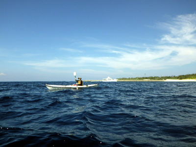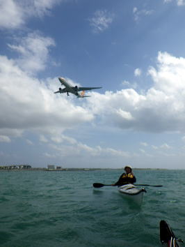 ![]() ![]() 南城市市喜屋海浜公園から漕ぎだして約8q久高島へ向かいます。 |