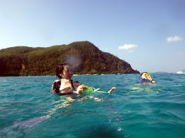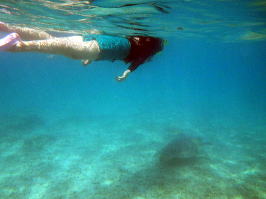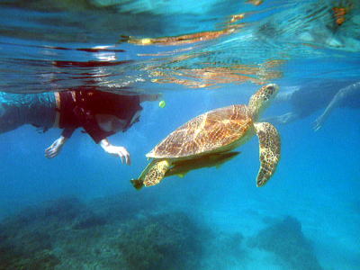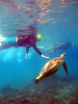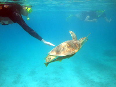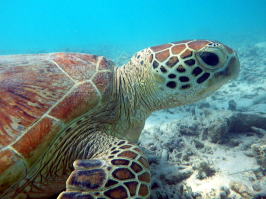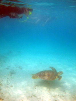 | 人が近づいても逃げる事も無く一緒に泳いでくれる大サービス。 その日 見た海亀の数は4頭 |