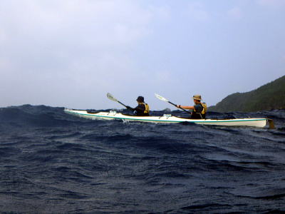 | PM2時 出発 波の高さ3m〜4m 野崎周辺は北からのうねりが岩場にたたきつけかなりの返し波があるだろう、 それとスタートから約1qはかなりの向かい風 後追い風になるだろうという予測。 |