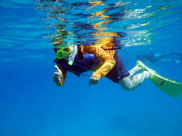 | 10月13日(日) もしかすると、14日のフェリーが欠航の可能性ありと言う事で本日のフェリーで那覇に戻ることにしました。 午前中は渡嘉志久湾に居ついている海亀を見に行くことに。 |