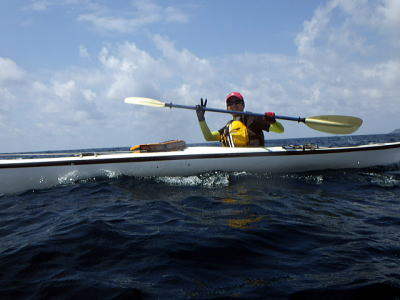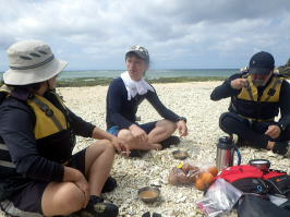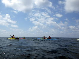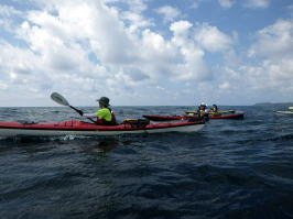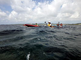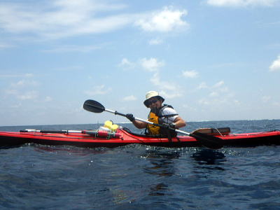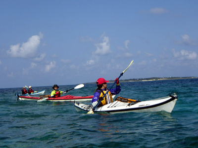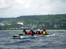 ![]() Yさん Mさん Kさん Mさん以外は初のシーカヤック、仕事柄体力もあり天候も良いので本格的なシングル艇シーカヤックを漕いでもらいました。 |