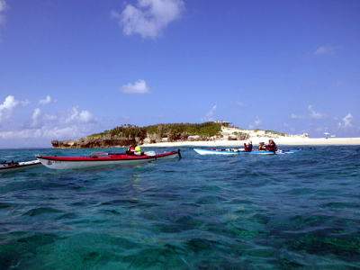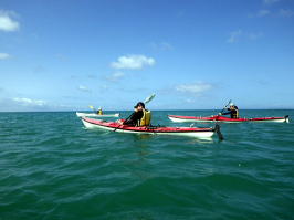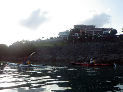 沖縄マリンレスキューボランティア協会の トレーニングを兼ねたロングツーリングです。 その名の通り沖縄のマリンレジャーを消防レスキュー隊の技術に 医学の知識でマリンレジャーの安全性をシーカヤックを使ったレスキューに関わる団体の一つです。 この日は南東から南の風、波の高さ1,5メートル 漕力を養い外洋の波を体感してみたいと言うリクエストがあり、 行きは外洋、帰りはインリーフを漕いでのロングツーリングを行いました。 |