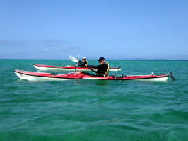 | AM09:00集合 10:00に漕ぎだし戻ってきたのPM5:00でした。 次会のトレーニングは奥武島から豊崎ビーチまで(22,6q)の外洋ロングパドリングに 豊崎ビーチからルカン礁往復(25,2q)で漕力をつけましょう。 |
