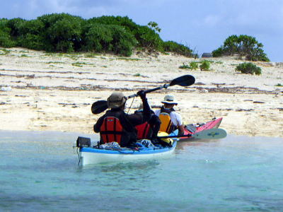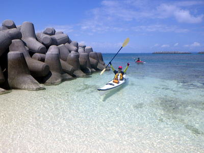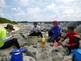 | 4月2日 午前半日ツアー。 (豊見城市瀬長島〜糸満市岡波島往復) 出張中の余暇を利用してきてくれた3名組です。 |